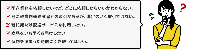 当社で請け負っている軽貨物の配送事業と取り扱い商品についてご紹介します。